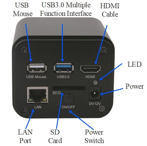 The HDMI 4K series camera is intended to be used for the acquisition of digital images from the stereo microscope, biological microscope or online interactive teaching.